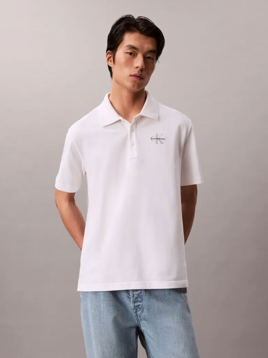 Calvin Klein Polo Casual Monologo Bright White da Uomo