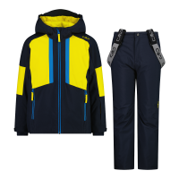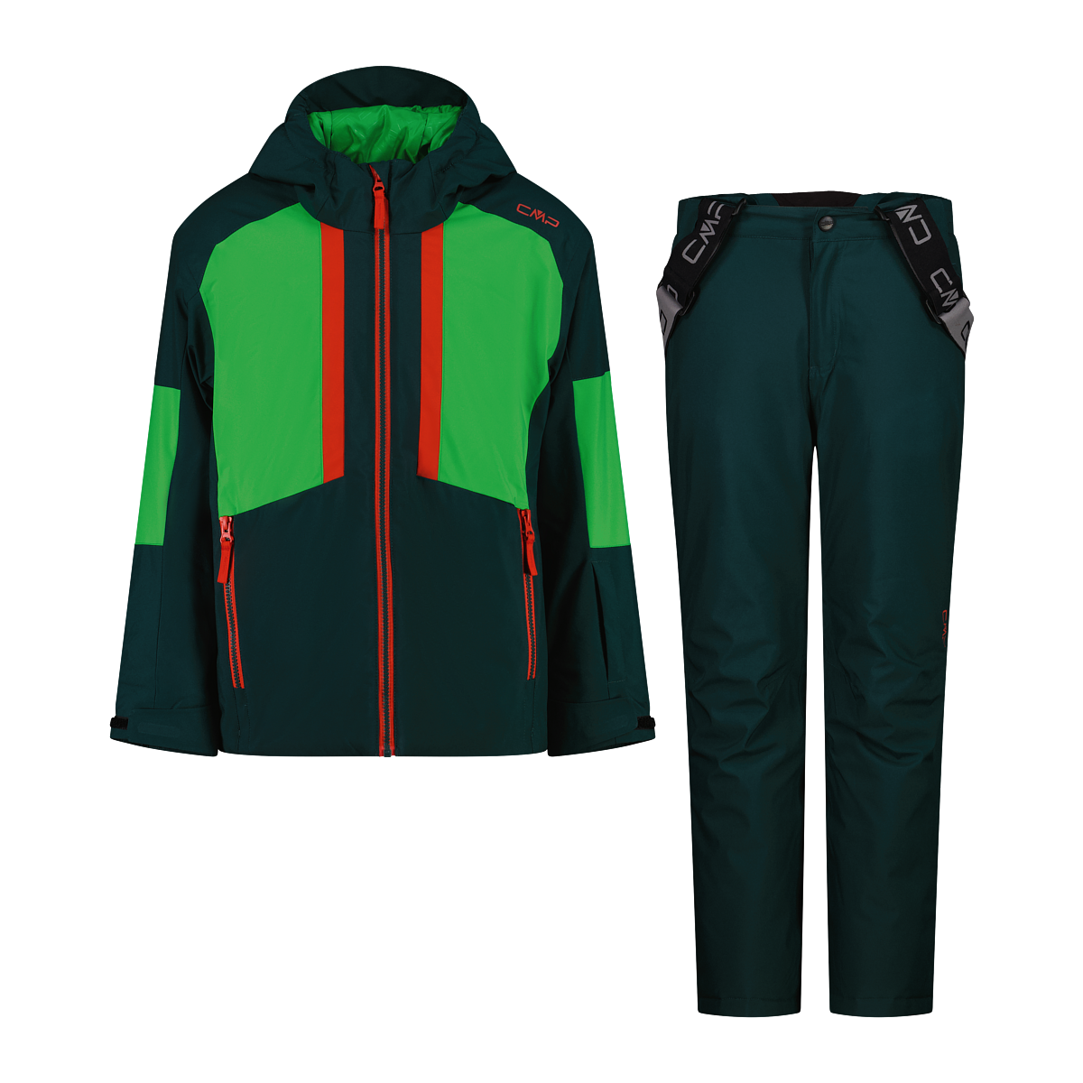 Skiset bestehend aus Jacke mit fest angebrachter Kapuze und Hosenträgern. Die Feel-Warm-Flat-Polsterung sorgt auch bei Kälte und Feuchtigkeit für Wärme, während die Clima Protect-Membran, die wasserabweisende Außenbehandlung und die teilweise versiegelten Nähte Schutz vor Witterungseinflüssen bieten und gleichzeitig eine hervorragende Atmungsaktivität gewährleisten (WP 10.000 und MVP 10.000). Eine Zusammenspiel von Technologien, die kleine Skifahrer an Schneetagen trocken und warm halten. Jacke mit regulierbaren Ärmelbündchen mit Klettverschluss und Innenbündchen aus Lycra mit Daumenöffnung, Frontreißverschluss mit windfester Blende und Scheuerschutz, regulierbarem Saum mit Kordelzug, zwei Seitentaschen mit Reißverschluss und Skipasstasche am Ärmel. Hose mit regulierbaren Hosenträgern, Schneefang an der Unterseite und zwei Reißverschlusstaschen.