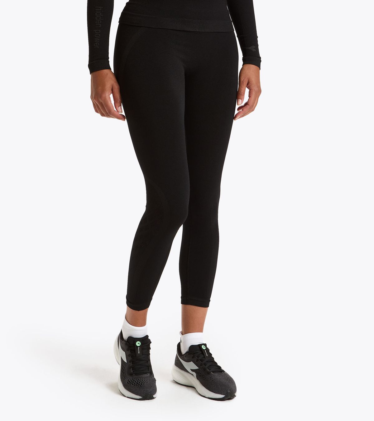 Hochtechnische Materialien und Stoffe für lange Damenhosen, die sich durch Komfort und Atmungsaktivität auszeichnen. Hergestellt aus einer weichen und leichten Mischung aus Polyamid und Polypropylen. Letzteres hat – Ton in Ton – die Doppelfunktion, den Körper trocken zu halten und die Logos hervorzuheben. Das Becken zeichnet sich durch eine kompaktere Bauweise und einen höheren Kälteschutz aus.
