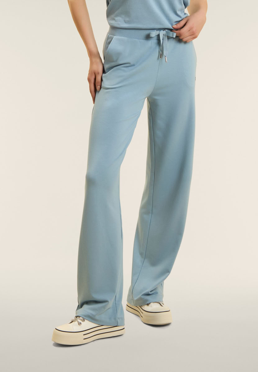 Sportliche Hosen mit bequemer Passform und regulärer Länge, ausgestattet mit einem regulären Bund mit Rippbündchen und Kordelzug. Das Wide-Leg-Design verleiht eine entspannte und fließende Form. Das FREDDY-Logo, das mit tonalen Strasssteinen gefertigt ist, befindet sich an der linken Seite für einen Hauch von Glanz. Die französischen Taschen runden die Funktionalität ab. Hergestellt aus French Terry, einem Stoff, der die Weichheit von Modal und Baumwolle mit der Elastizität von Elasthan vereint, bieten sie Komfort, Atmungsaktivität und eine perfekte Passform.