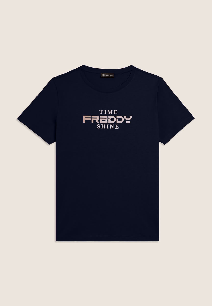 Freddy T-Shirt Comfort Fit mit Slogan "Time Shine" Dunkelsaphir für Damen