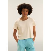T-Shirt mit kurzem Arm im schlichten Design mit geradem Saum und Rundhalsausschnitt. Die bequeme Passform und die cropped Länge machen sie perfekt für einfache und vielseitige Kombinationen. Das kleine FREDDY-Logo, das in glitzerndem Weiß auf der Brust gedruckt ist, verleiht einen strahlenden und eleganten Akzent. Hergestellt aus leichtem 100% Baumwoll-Jersey, ist sie ideal für jede lässige Gelegenheit.