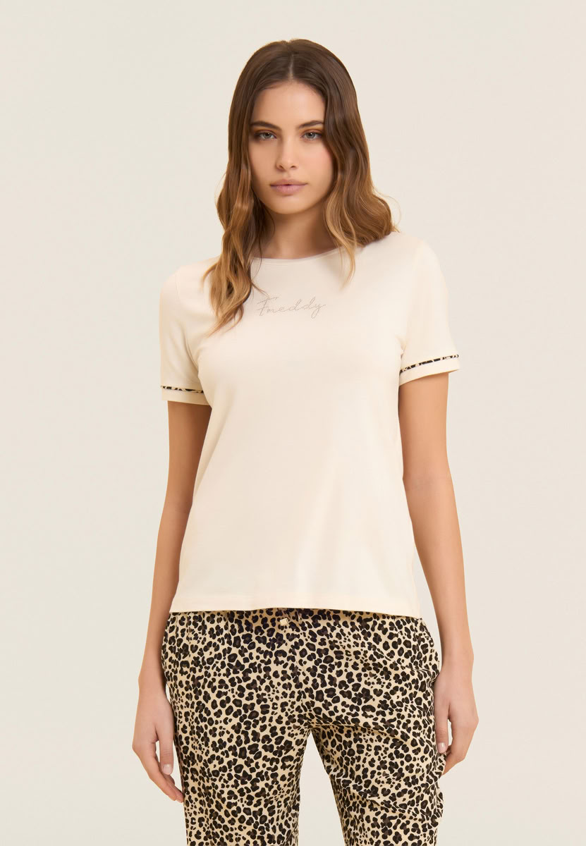 T-Shirt mit kurzen Ärmeln aus Baumwoll- und Modal-Jersey, für ein Gefühl von Weichheit und Frische auf der Haut. Das Design wird durch einen leichten Crinkle-Stoffeinsatz auf der Rückseite bereichert, mit zerknittertem Effekt für einen Hauch von Bewegung. Der animalische Piping am Ärmelabschluss verleiht einen modischen Akzent, während das kleine Freddy-Logo in Nieten die Brust erhellt. Regular Fit und gerader Saum für einen essentiellen, aber detailverliebten Look.