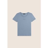 T-Shirt mit kurzen Ärmeln und regulärer Passform und Länge, gekennzeichnet durch einen abgerundeten Saum an den Seiten. Rundhalsausschnitt und kurze Ärmel mit einem eleganten Cut-Out-Detail, umrandet von Strass. Das FREDDY-Logo, gefertigt aus Strass in passendem Farbton, befindet sich unter dem Ausschnitt und verleiht dem Kleidungsstück Glanz. Der Jersey-Stoff aus Baumwolle und Modal bietet Weichheit, Atmungsaktivität und eine glatte, leichte Textur, ideal für einen frischen und eleganten Look.
