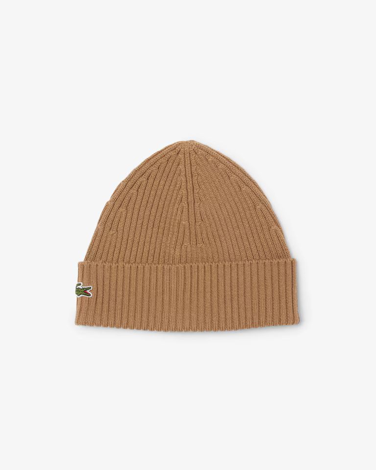 Lacoste Gerippte Mütze aus gebürsteter Wolle Braun