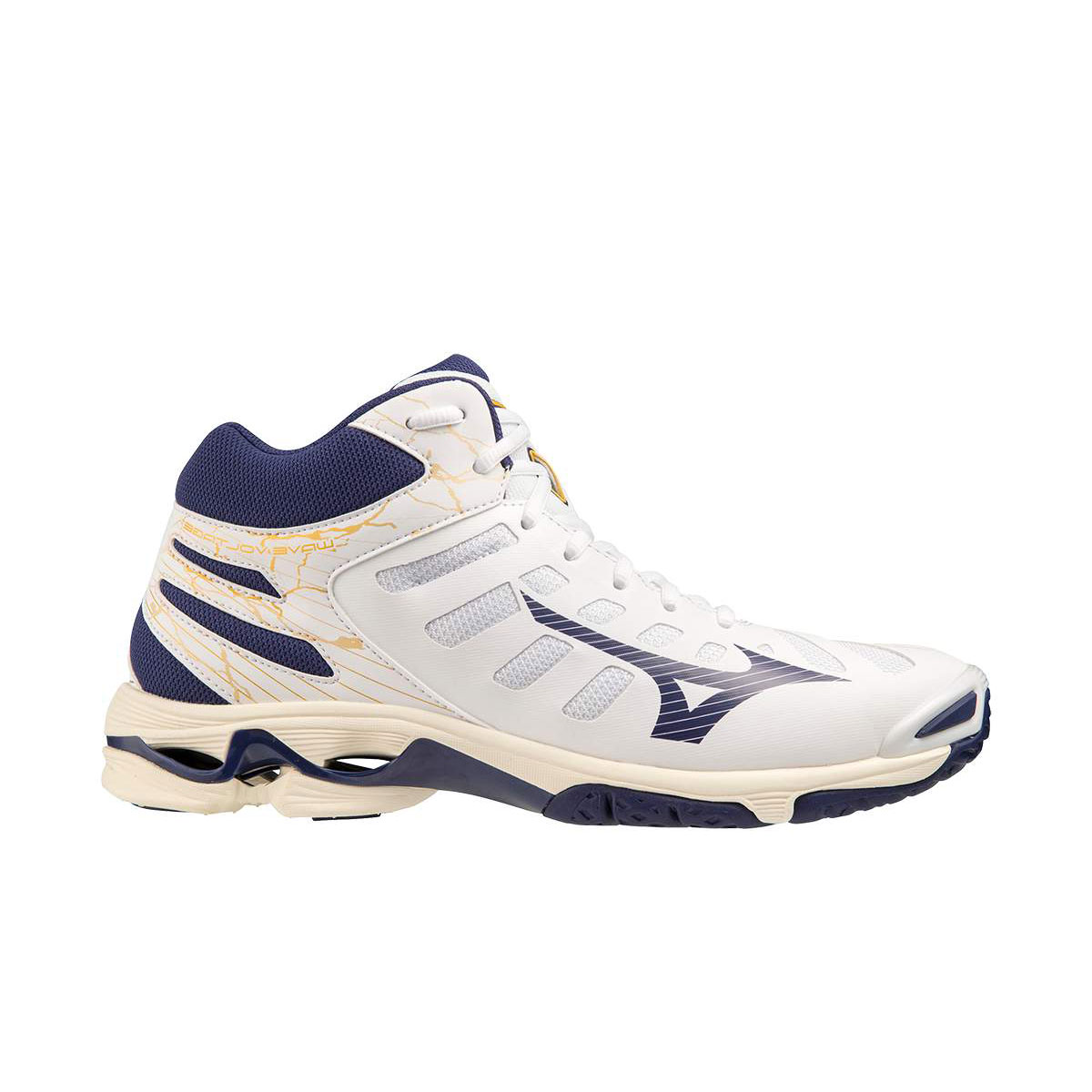 Mizuno Wave Voltage Mid Weiß/Blueribbon/MP Gold