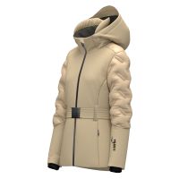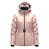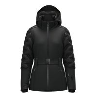 Die Frontreißverschlüsse und Taschen sind wasserdicht mit individuell gestalteten Zippern, einschließlich einer kleinen Tasche für den Skipass mit unsichtbarem Reißverschluss. Der abnehmbare Gürtel mit individuell gestalteter Schnalle und Verstellern auf der Rückseite erhöht die Funktionalität. Innere Bündchen mit Daumenloch, der Innenkragen aus Velourstoff und der schützende Einsatz für den Helm verbessern Komfort und Schutz. Abnehmbare Innenbeinschoner und Innentaschen mit Reißverschluss runden das technische und vielseitige Kleidungsstück ab.