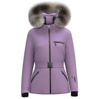 Diese technische Damenjacke besteht aus einem vollständig versiegelten Chroma Twill Stretch Außenmaterial, das Wasserdichtigkeit und Schutz vor Witterungseinflüssen gewährleistet. Die Struktur ist darauf ausgelegt, Komfort und Leistung zu bieten, mit vorgeformten Ärmeln, einem taillierten, durch eine innere Kordel verstellbaren Saum und einer abnehmbaren Kapuze, die mit einem abnehmbaren Kunstpelzrand verziert ist. Der Frontverschluss und die Taschen sind mit wasserdichten Reißverschlüssen mit personalisiertem Zipper ausgestattet. Sie enthält eine praktische Tasche für den Skipass mit unsichtbarem Reißverschluss, einen abnehmbaren Gürtel mit personalisierter Schnalle und hinteren Verstellern. Die inneren Bündchen mit ergonomischem Daumenloch erhöhen den Wärmeschutz. Der Innenbereich des Rückens und des Kragens ist mit weichem Veloursstoff und einem zentralen Anti-Reibungseinsatz versehen. Die feste Innenlatzhose mit rutschfestem Gummi und die beiden inneren Handytaschen – von denen eine mit abnehmbarem Linsenreiniger ausgestattet ist – runden das Kleidungsstück ab.