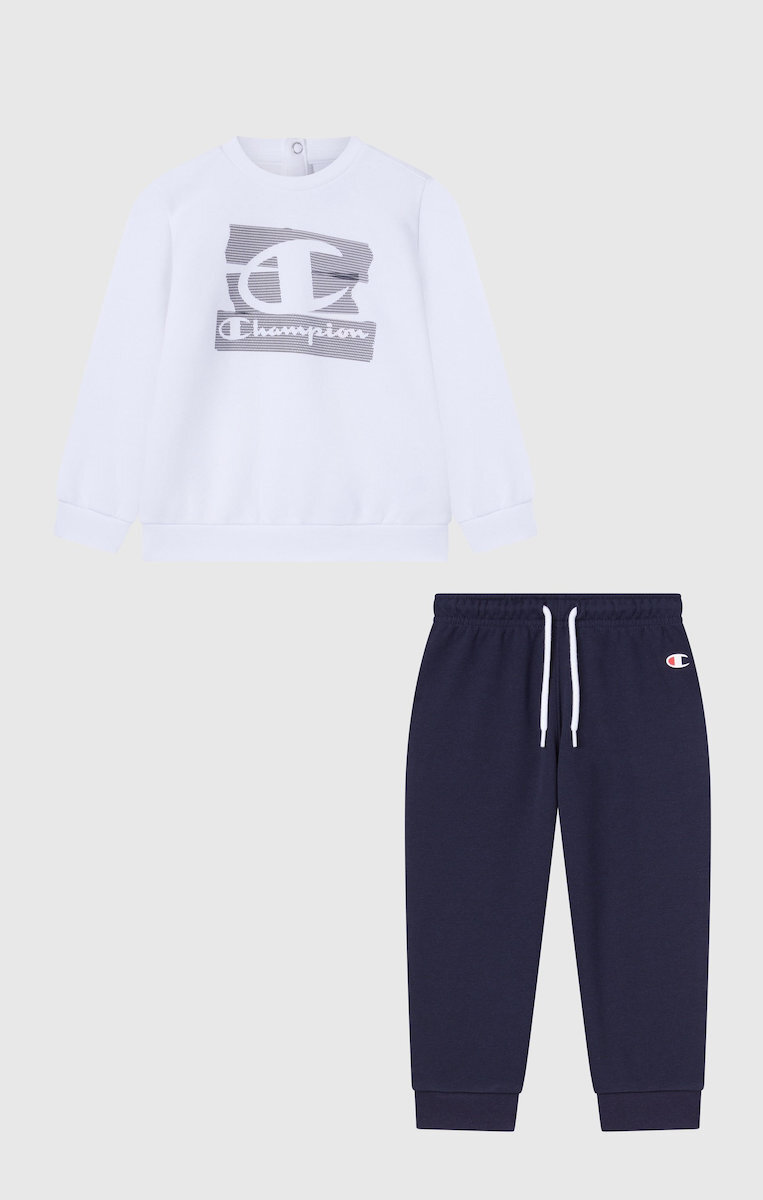 Comfortable and easy to wear, this crewneck set is perfect for the most active days. The sweatshirt is enhanced by a bold central graphic and features practical clip buttons on the back for easy dressing. The matching pants with ribbed cuffs complete the outfit in a practical and sporty way. The fleece fabric with a fleece lining ensures softness and warmth.