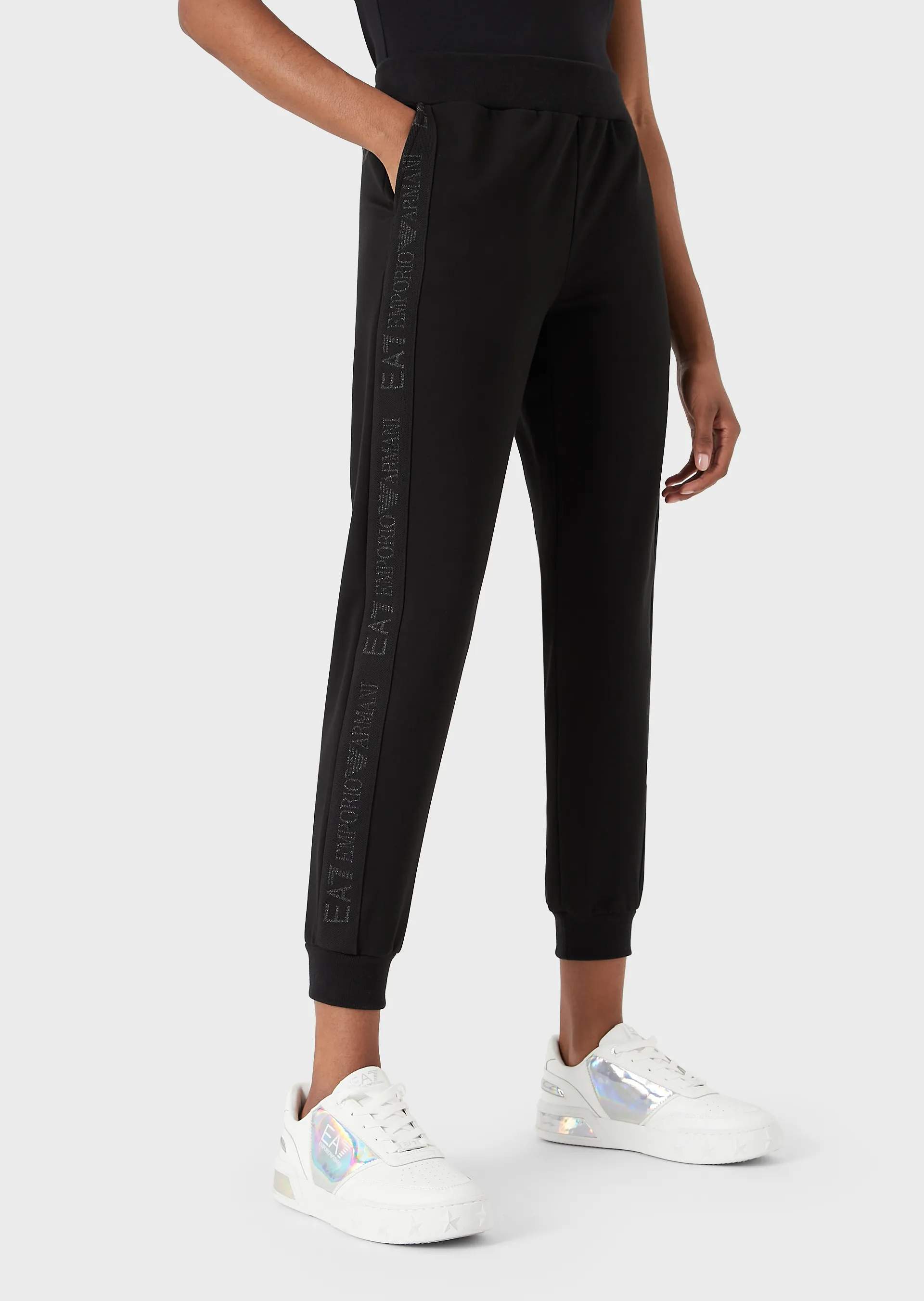 Joggers with a sporty vibe, crafted from a stretch modal blend. The style features a customization on the sides with a tone-on-tone logo tape, reminiscent of other pieces from the collection. Designed for sport and leisure, this piece is ideal for pairing with sweatshirts from the collection.