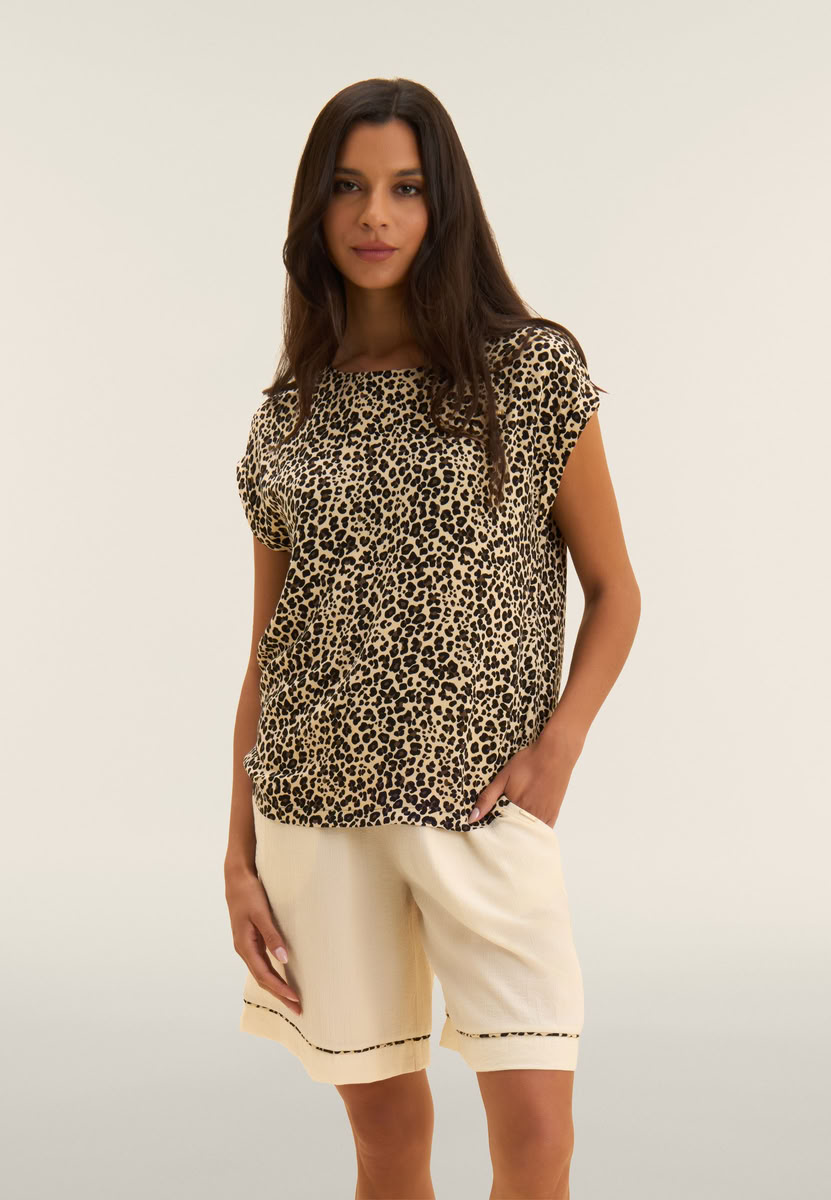 Freddy T-Shirt in Viscose Animal Print Whitecup Grey for Women