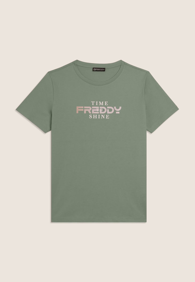 Freddy Comfort Fit T-Shirt with slogan "Time Shine" Icerberg Green for Women
