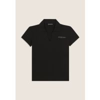 Short sleeve T-shirt featuring a V-neck design and shirt collar that adds a sophisticated touch. The regular fit and straight hem make it perfect for dynamic leisure time. The FREDDY logo in light pink beads on the heart and the shiny elastic inserts that decorate the side seams create an elegant detail. Made from lightweight stretch cotton jersey, it is ideal for a comfortable and versatile look.