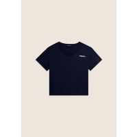 Short-sleeve T-shirt with a simple design featuring a straight hem and crew neck. The comfort fit and cropped length make it perfect for easy and versatile pairings. The small FREDDY logo printed on the heart in glitter white adds a bright and refined touch. Made from lightweight 100% cotton jersey, it is ideal for any casual occasion.