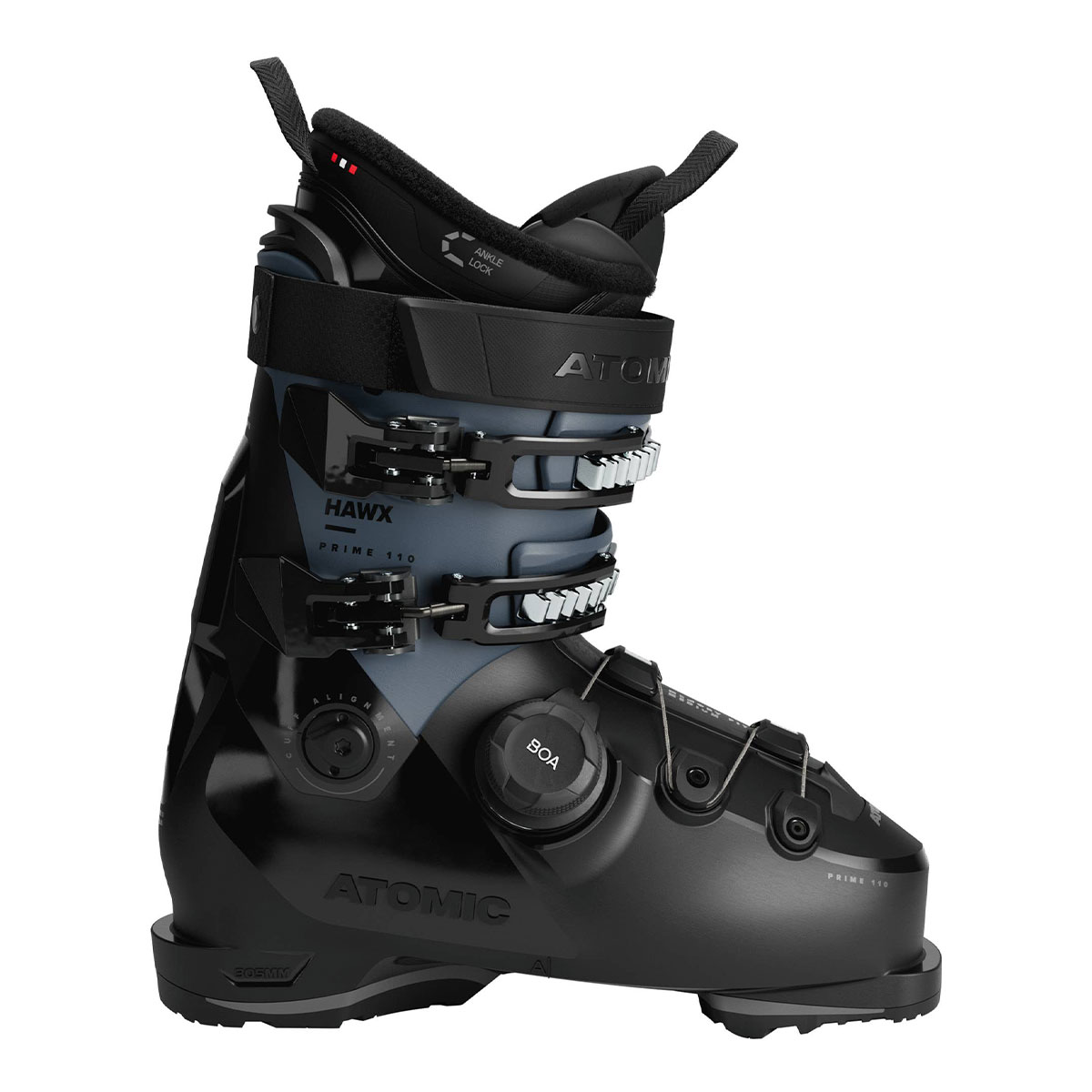 Gli sciatori all-mountain apprezzeranno lo scarpone Atomic Hawx Prime 110 BOA per la sua comoda forma a volume medio da 100 mm e il flex medio da 110. Il sistema BOA Fit microregolabile sulla parte inferiore dello scafo avvolge uniformemente il piede per una calzata precisa e una sensazione di sicurezza estrema. Realizzato utilizzando Prolite di nuova generazione con rinforzi strutturali chiave nelle zone critiche, questo potente scarpone alpino è adatto per una vasta gamma di terreni. Una scarpetta termoformabile Mimic Silver con Ankle Lock presenta materiali morbidi a contatto con la pelle e può essere personalizzata per una calzata anatomica grazie alla tecnologia Mimic. La termoformatura Memory Fit consente di personalizzare gambetto e scafo in pochi minuti. Lo spoiler rimovibile del gambetto con Adaptive Fit System (AFS) aumenta lo spazio intorno al polpaccio quando è necessario. Gli sciatori con piedi di volume medio che non vogliono sacrificare il comfort si troveranno a loro agio con l’Hawx Prime 110 BOA.