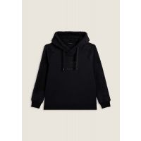 Felpa sportiva da donna realizzata in felpa garzata elasticizzata con maniche e cappuccio in pile sherpa. Cappuccio incrociato con coulisse, fondo con spacchi laterali in costina e grande logo FREDDY in borchie sul fronte. Senza tasche