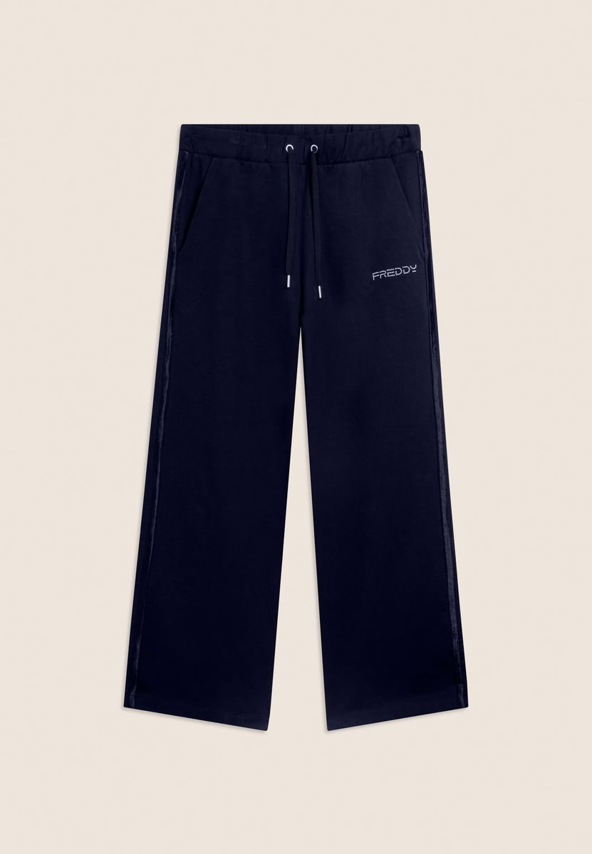 Freddy Pantaloni Sportivi Cropped Comfort Wide Leg Dark Sapphire da Donna