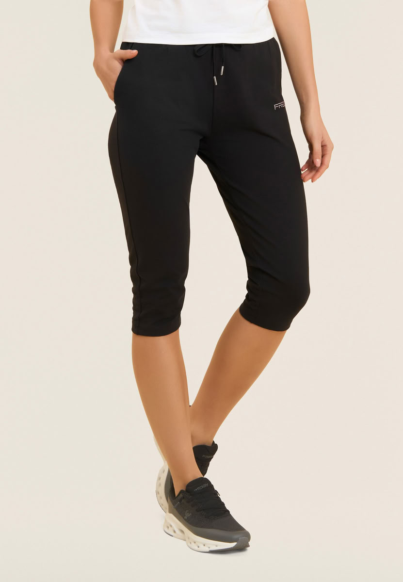Pantaloni sportivi con vestibilità regular e lunghezza corsaro, ideali per un look sportivo e comodo. La vita regular con fascia in costina e coulisse consente una vestibilità regolabile. Il logo FREDDY sulla tasca sinistra, composto da perline rosa chiaro, aggiunge un dettaglio distintivo. Con tasche anteriori interne, sono realizzati in jersey pesante stretch di cotone, perfetti per l'attività fisica leggera.