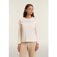 T-shirt in Light Jersey Supima da donna, con vestibilità regolare e fondo dritto. Il fronte è decorato da una grafica con logo e slogan “Time to Shine” in tonalità dorata. Una banda logata in jacquard copre le cuciture sulle spalle, valorizzando la costruzione