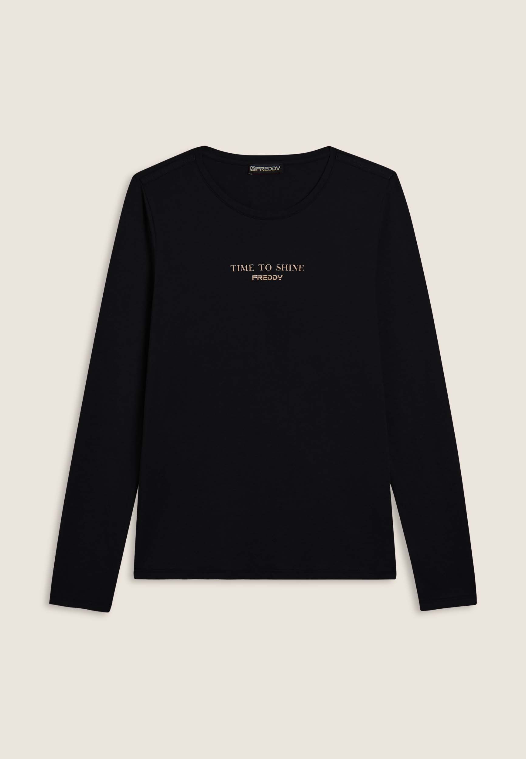 Freddy T-Shirt manica lunga con banda logata sulle spalle Nera da Donna