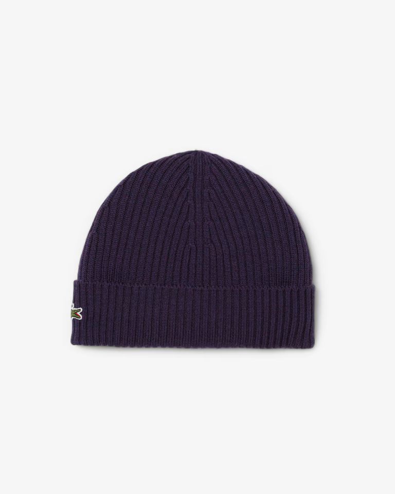 Lacoste Berretto in lana spazzolata a costine Viola